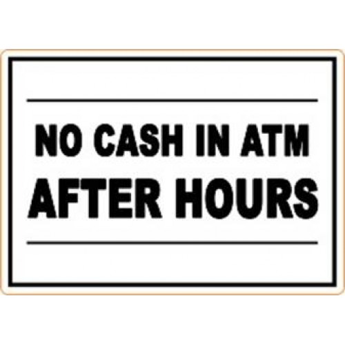 -NO CASH IN ATM AFTER HOURS -3.5” x 2.5” decals